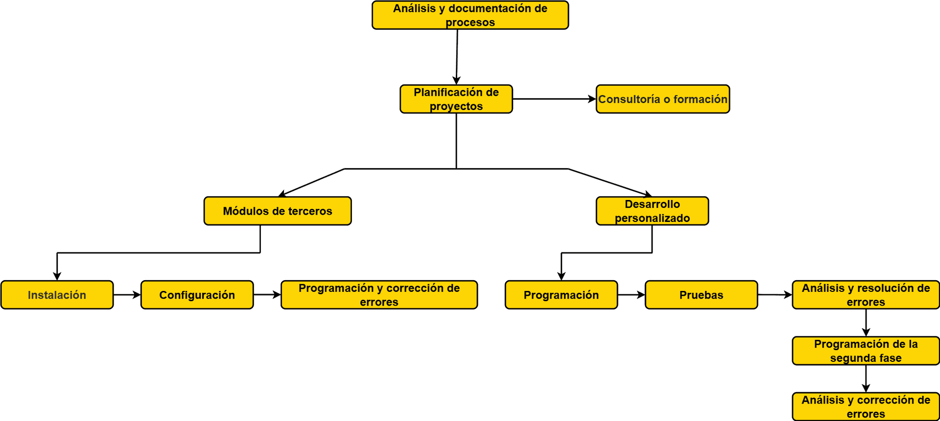 Pruebas: Los módulos desarrollados se prueban exhaustivamente para garantizar que funcionen perfectamente y cumplan con los requisitos.